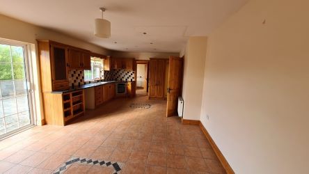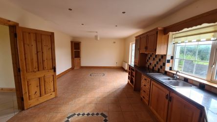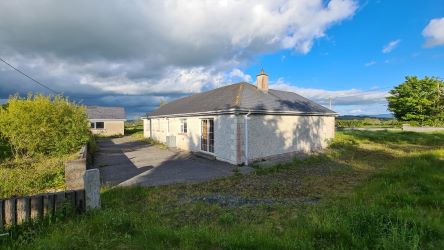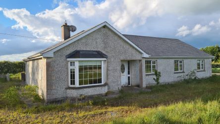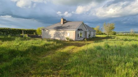 The house is a traditional 4 bed bungalow with large detached garage on a most generous site of c.0.9 acre with fabulous views.  The property has its own well and septic tank, oil fired & solid fuel central heating.  All in all an affordable home in a good location.  This would make a beautiful family home.